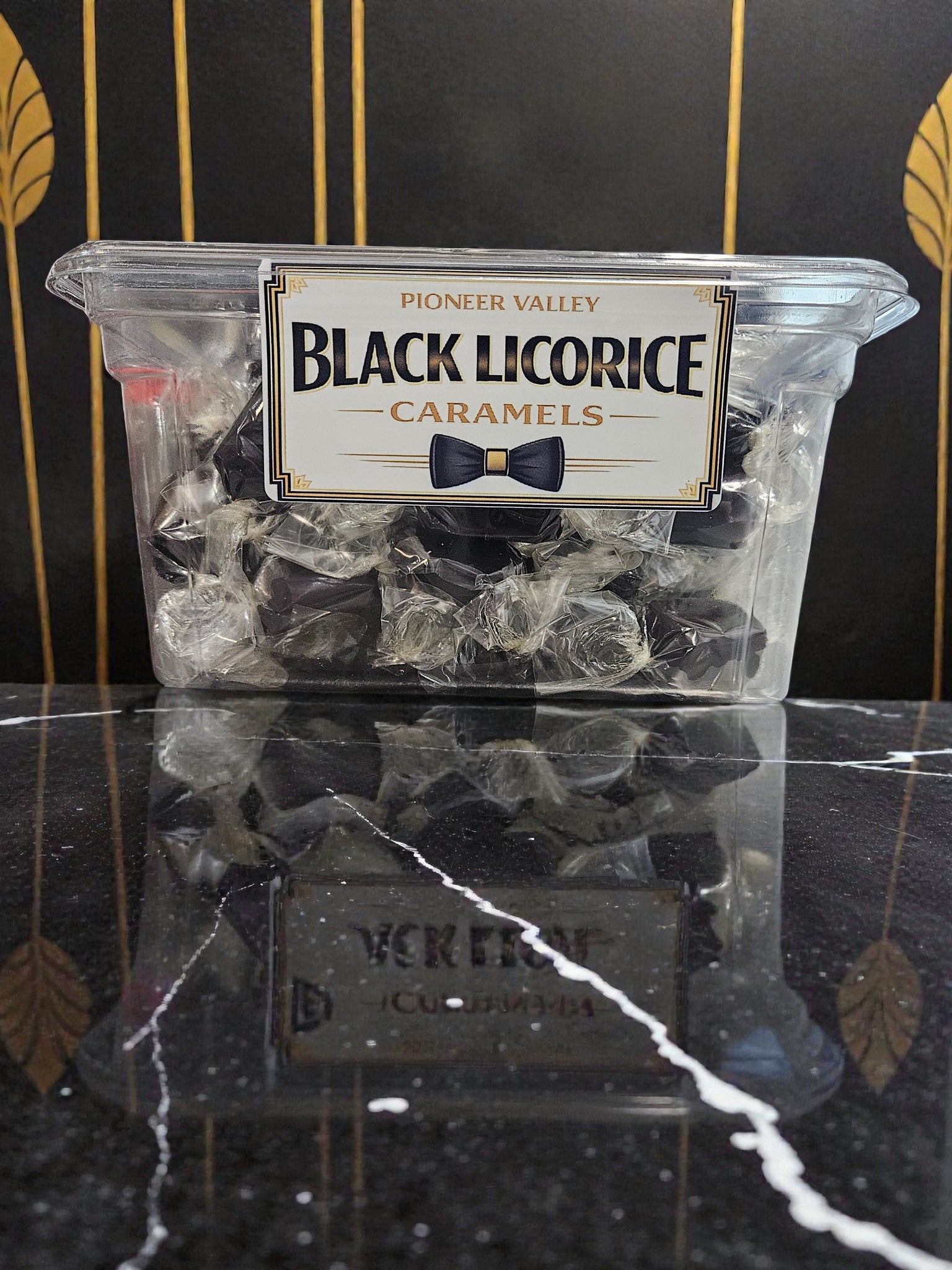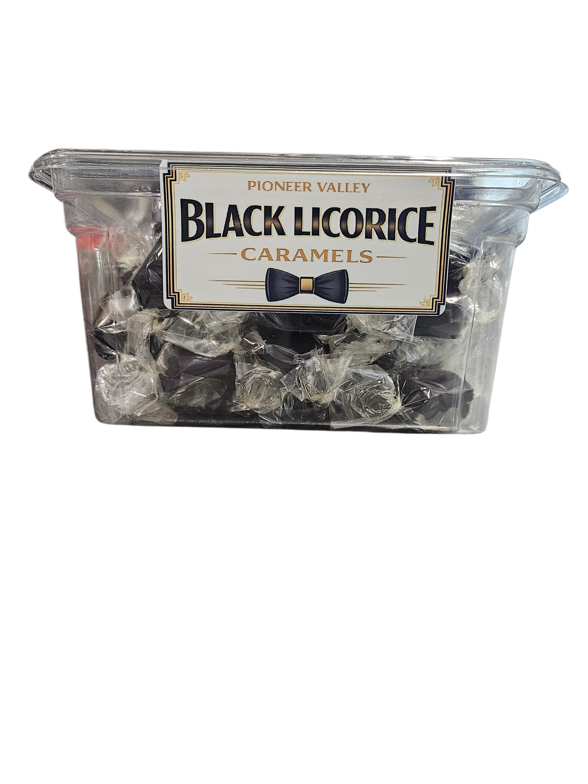 A three pound tub of our Black Licorice Caramels.